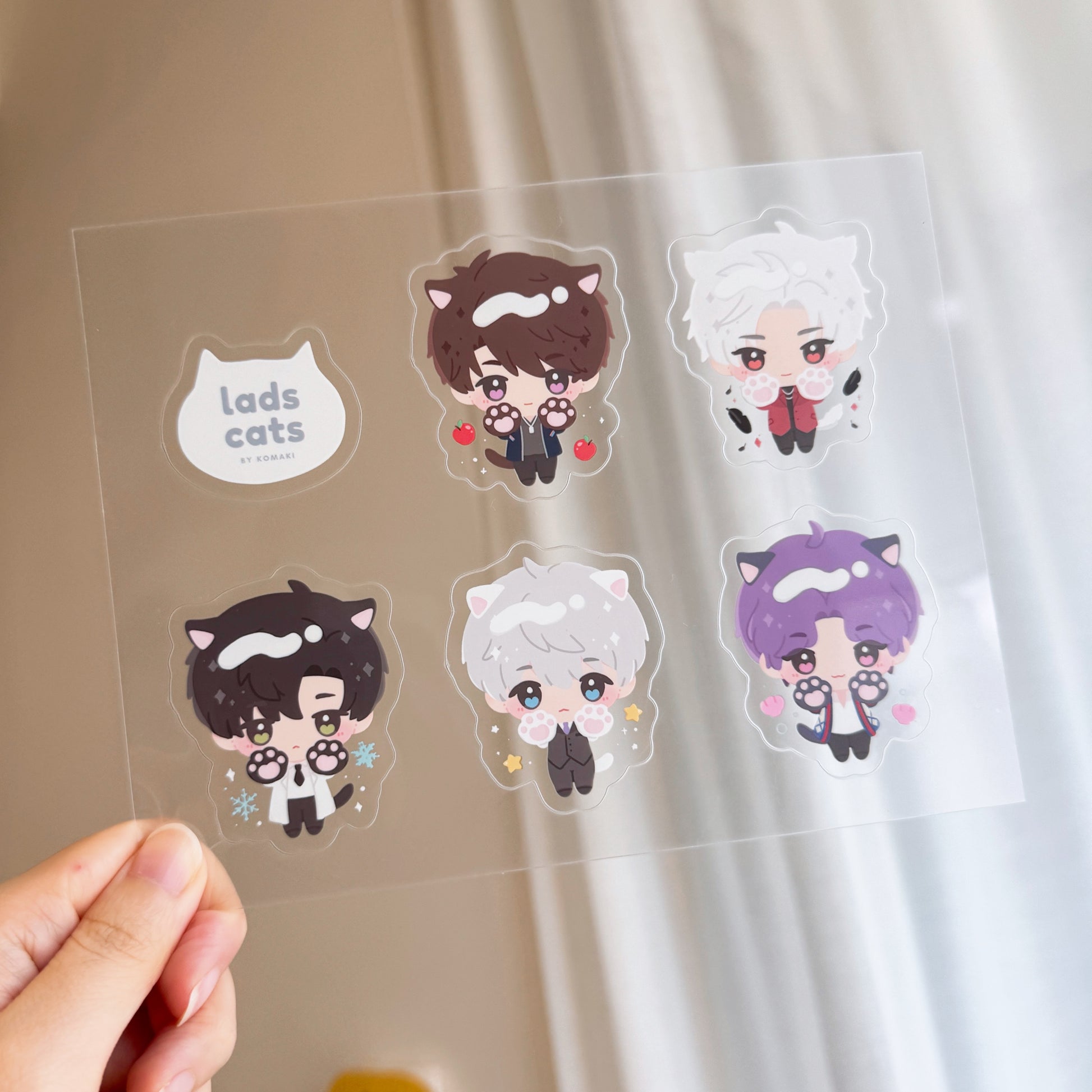 LADS Cats Clear Sticker Sheet – Xavier, Rafayel, Zayne, Sylus & Caleb