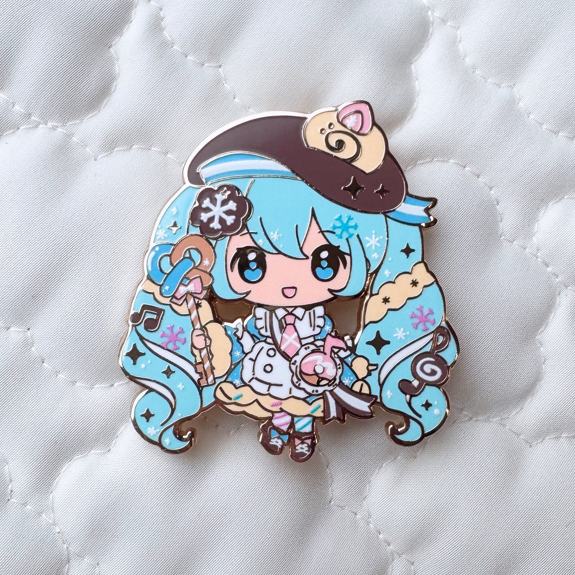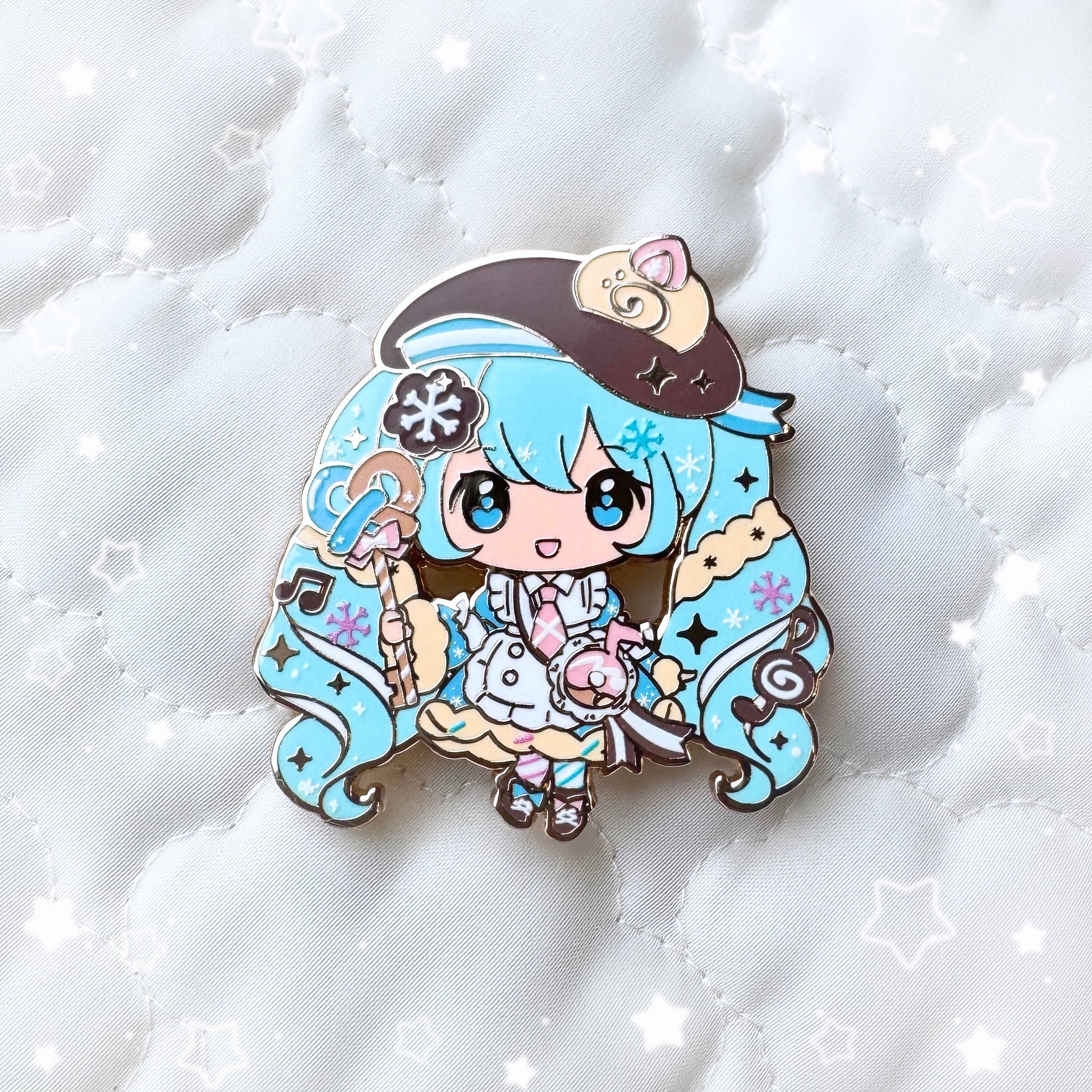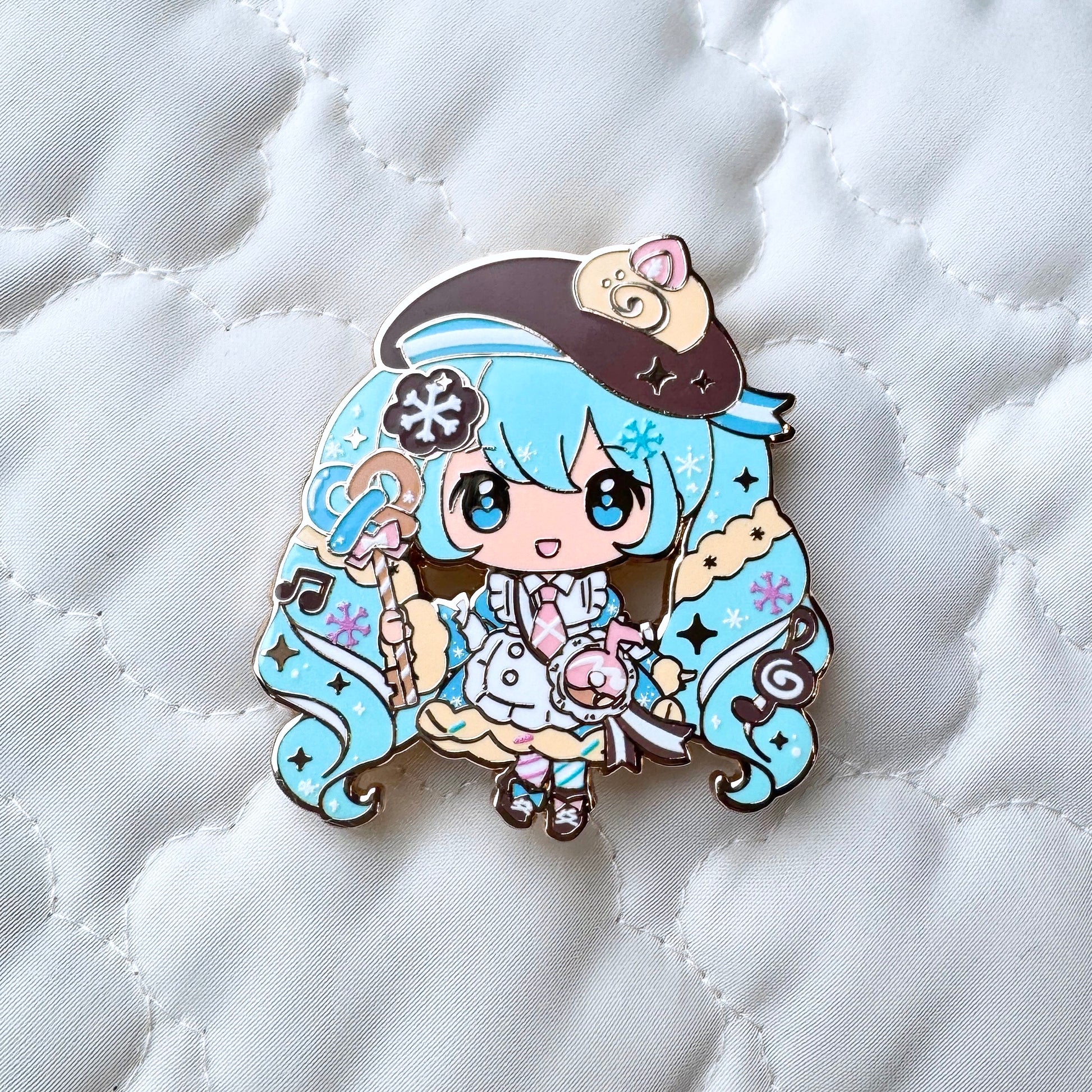 Perfect for Vocaloid enthusiasts, enamel pin collectors, or anyone who loves cute winter-themed anime designs.